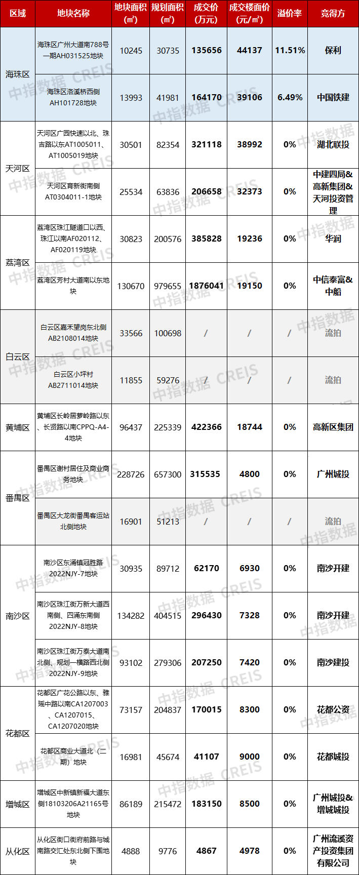 广州第三批集中供地成交15宗,广船巨无霸地块187亿元底价成交