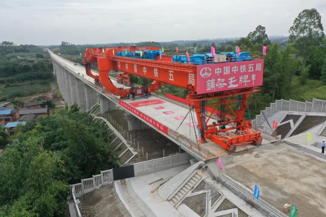 成自宜高铁是四川省境内一条连接成都市、自贡市与宜宾市的高速铁路,是我国中长期铁路规划中“八纵八横”高速铁路主通道之一“京昆通道”的重要组成部分,设计时速为350公里的南向高铁大通道,全长约259公里,全线需架设3928孔箱梁,目前先期完工标段的是由中铁五局承担的成自站前6标569孔箱梁。据中铁五局成自站前6标一项目部现场负责人向亿里介绍,自2021年3月17日开始架梁以来,工程克服了架梁运距长、酷暑高温、运架梁通道复杂等不利因素,严格控制架梁的每道工序,确保了架梁任务的安全完成。下一步,将进行桥面系施工和无砟轨道施工,为今年年底实现全线铺轨创造条件。