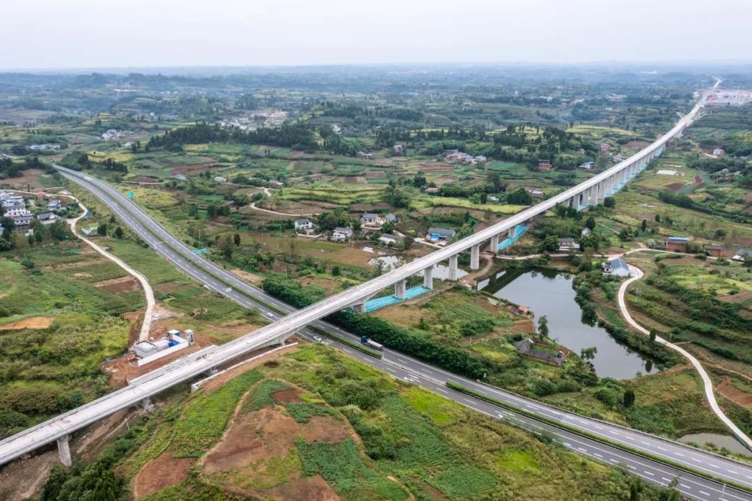 ▲任家湾特大桥建设现场成达万高铁是我国“八纵八横”高铁网沿江通道的重要组成部分,线路西起四川省成都市天府站,途经四川省资阳市、遂宁市、南充市、达州市及重庆市开州区、万州区,接入既有郑渝高铁万州北站,正线全长477公里,设计时速350公里,建设工期5年。