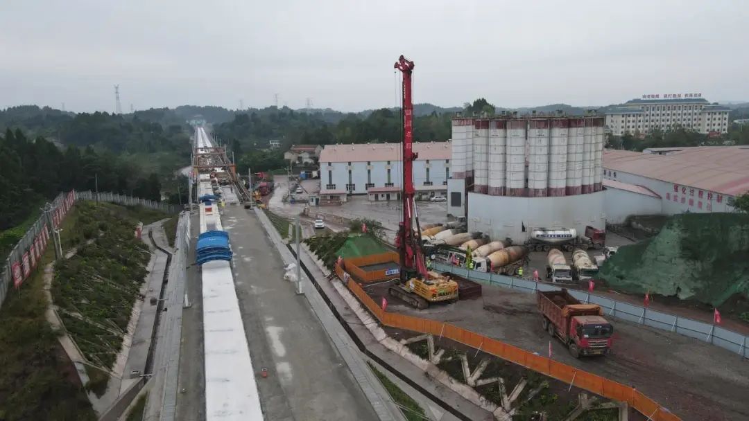▲任家湾特大桥建设现场任家湾特大桥是全线控制性工程,全长2672.252米,该桥三次跨越公路铁路线,此次开钻的首根桩基是任家湾特大桥为跨成自铁路连续梁主墩桩基,直径1.5米,桩长26米。
