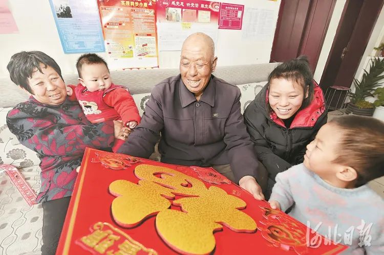 阜平县顾家台村,顾成虎(中)一家人脸上写满了幸福。河北日报记者赵海江摄