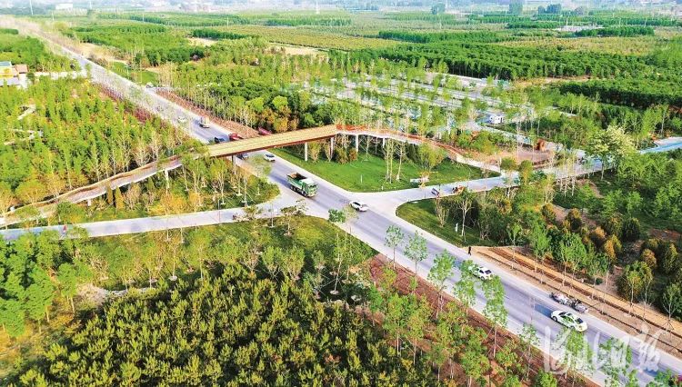 “华北明珠”碧波万顷,飞鸟翔集;“千年秀林”草木葳蕤,绿意盎然;建设工地塔吊林立,工程车辆穿梭繁忙……