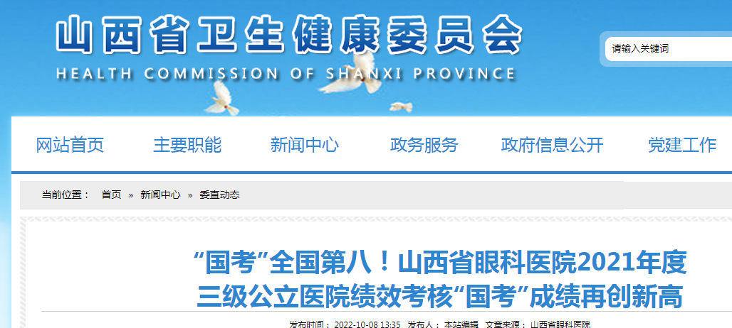 山西省眼科医院2021年度三级公立医院成绩再创新高