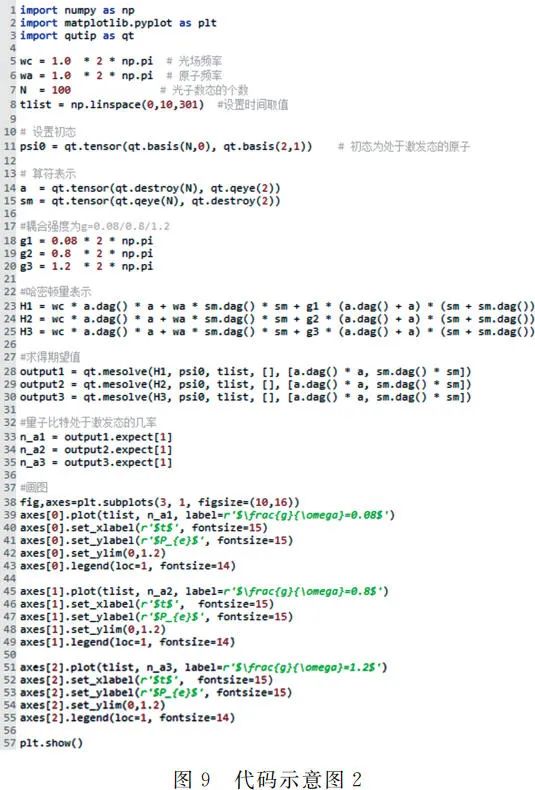 在物理问题的科学研究中,数值计算已经成为物理学及其相关领域科研人员用来求解问题和图示结果的重要研究手段之一。对于不熟悉数值计算方法的科研人员来说,迫切需要快速掌握和使用一个简单易用的数值计算工具进行科学问题的探索和研究。在数值计算中,经常采用的编程工具语言主要有 Matlab、Mathematica 和 Frotran 等,具体采用哪种工具语言取决于科研人员的熟练程度和偏好。近年来,作为易学开源的编程语言,Python 得到了广泛的普及和使用。同时,基于 Python 语言编写的量子工具箱(Quantum Toolbox in Python,简称Qutip[1]),获得了世界各国从事量子光学及其相关领域研究的科研人员和学生的广泛使用,采用 Qutip 作为数值计算手段的科研文章已经超过 370 篇。