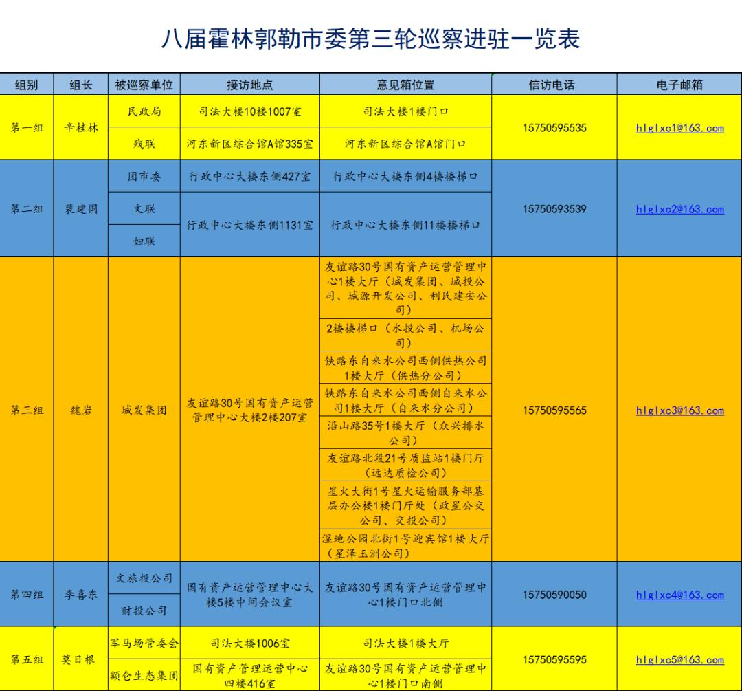 巡察组接访地点:司法大楼1006室、国有资产管理运营中心四楼416室