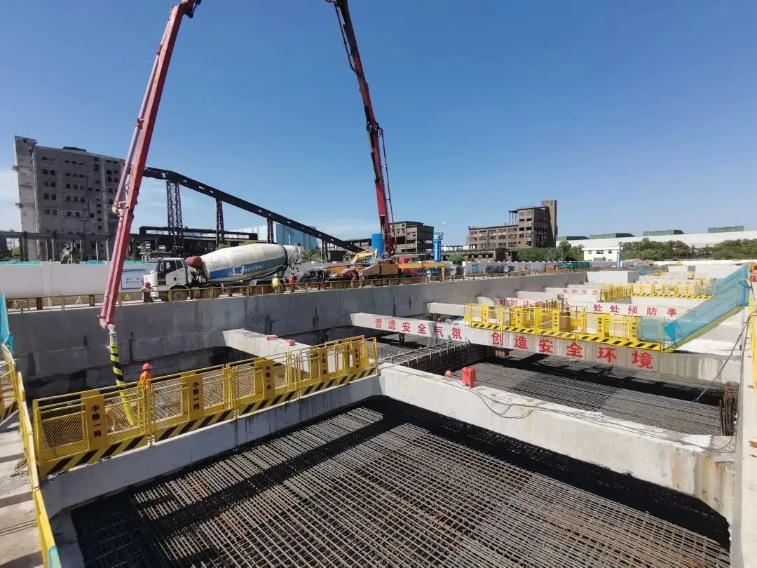 长江西路站实现主体结构封顶近日,18号线二期长江西路站主体最后一块顶板浇筑完成,成为18号线二期首座实现主体结构封顶的车站,为后续附属结构和盾构推进施工创造了有利条件。