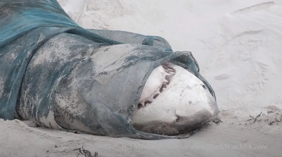 2017年2月9日,一只大白鲨尸体被冲上了南非杭斯拜(Gansbaai)附近的海滩。