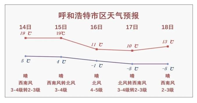 记者10月14日从呼和浩特市气象局了解到,15日夜间至18日,呼和浩特市将出现持续降温天气,风力增大。