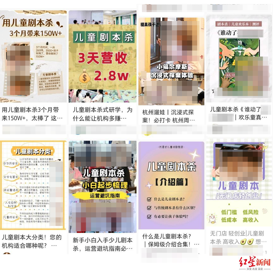 由于进入时间较早,河南某儿童剧本杀品牌目前已跻身行业头部,各大平台粉丝超20万。该品牌工作人员向红星新闻介绍,该文化品牌创办于2014年,原来是集办学、教材研发、产品推广、师资培训、教学管理及项目合作于一体的专业机构。旗下有教育、国学堂、托辅中心和儿童剧本杀等项目。“2021年,品牌结合教培自身优势,大力发展儿童剧本杀,引入沉浸式学习概念,希望通过结合剧本杀、桌游、话剧等形式,开创新的儿童教育娱乐模式。”
