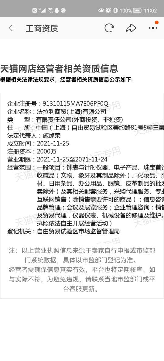 记者了解到,法拉利商贸(上海)有限公司,成立于2021年11月25日,法定代表人为施焯荣,注册资本2000万人民币,经营范围包括钟表与计时仪器、电子产品、珠宝首饰、工艺美术品及收藏品、化妆品、服装服饰、体育用品的批发、进出口等。天眼查App显示,该公司由运天(中国)投资有限公司和FERRARI S.P.A.共同持股。