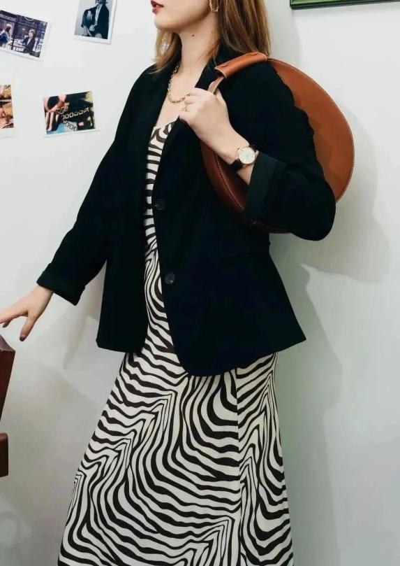 斑马纹也是不错的选择,和黑色西装搭起来,时尚不花哨!