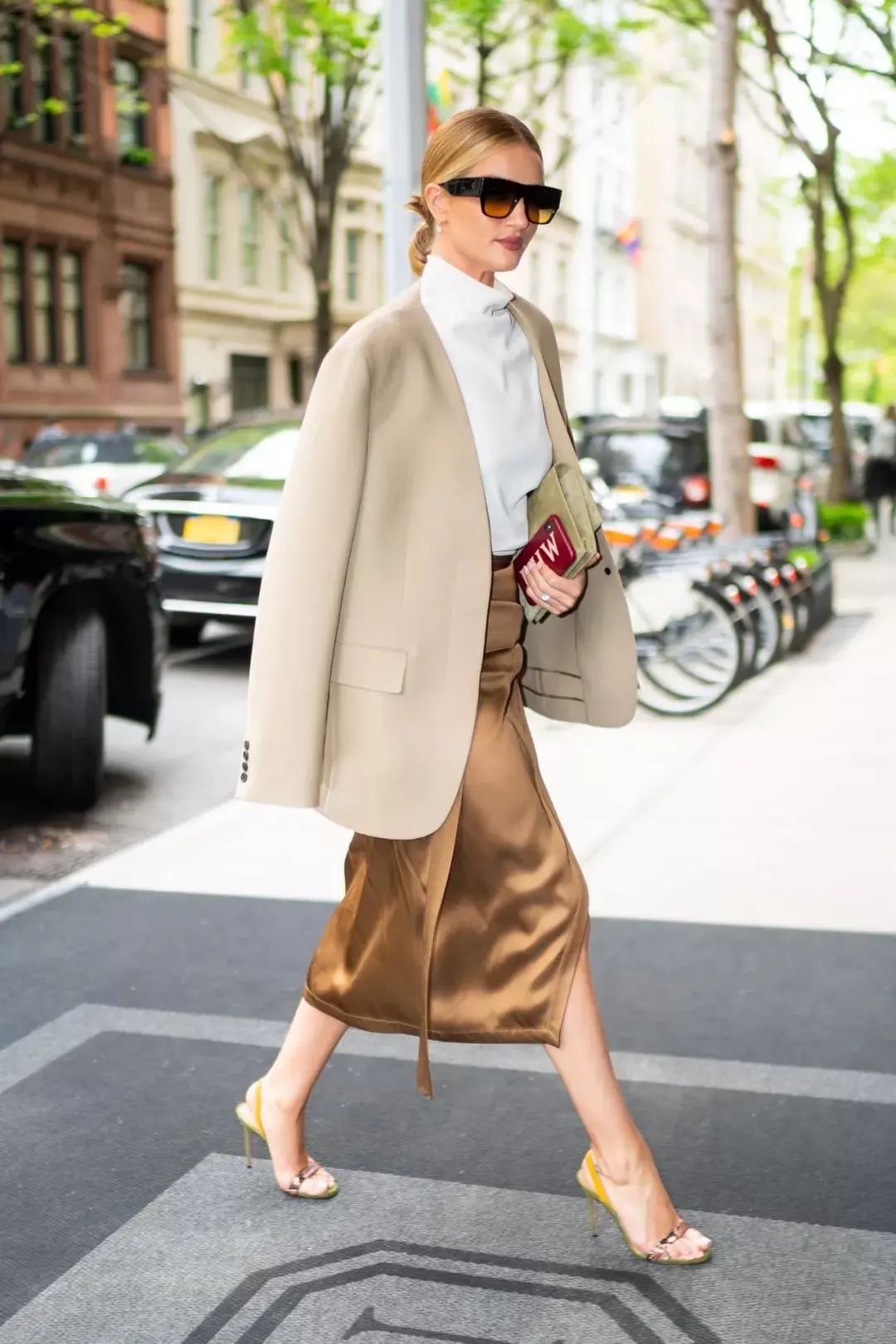 杏色无领西装自带精致高级感,搭配丝质半裙,更显优雅。
