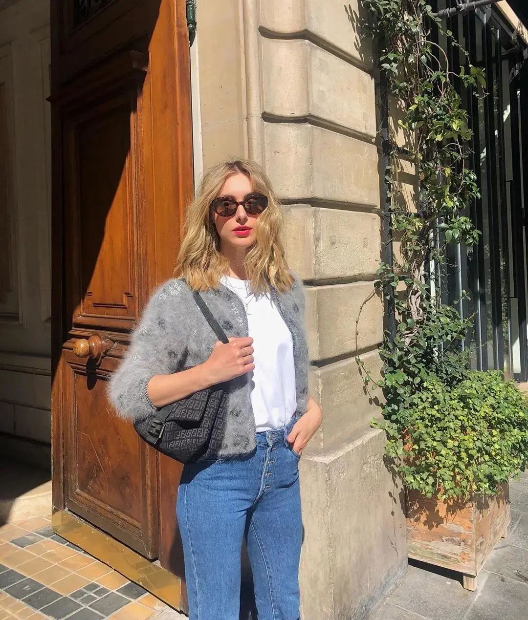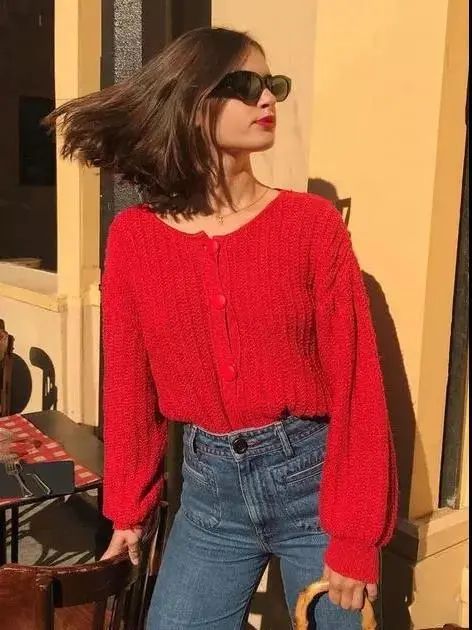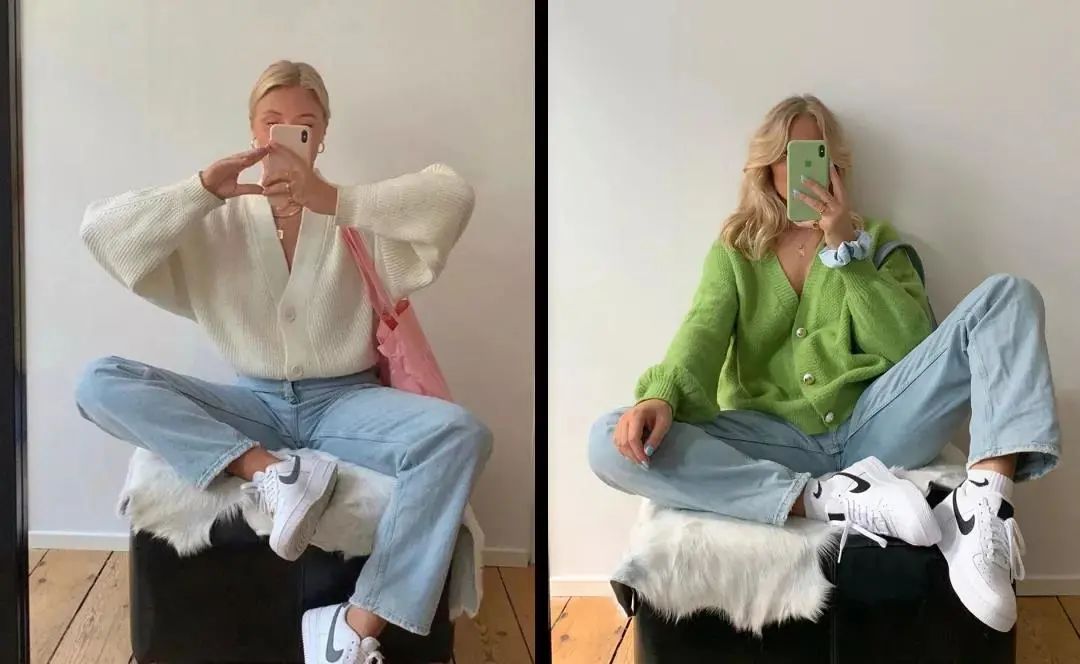 想要日常一点的话,用一件纯色针织开衫搭牛仔裤,随随便便出门也没在怕!
