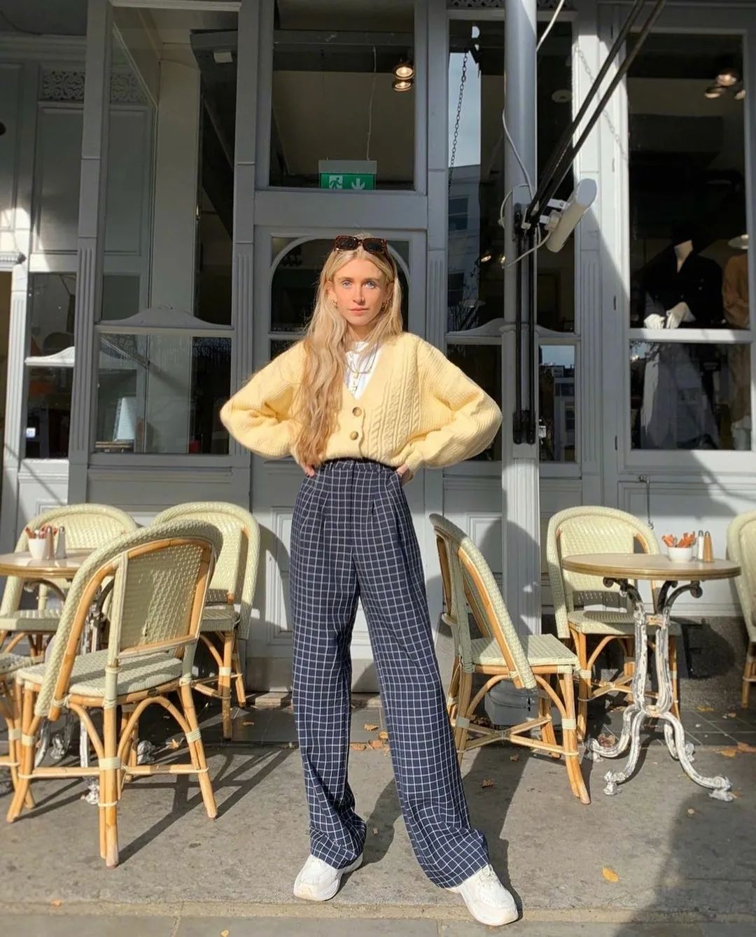 把牛仔裤换成格子裤,休闲感不减,反而增加不少温柔文艺气质。
