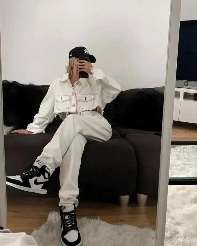 白色牛仔外套也是一样的休闲随性,同时又多了几分静谧的酷感,再搭一条白色牛仔裤就很合适。