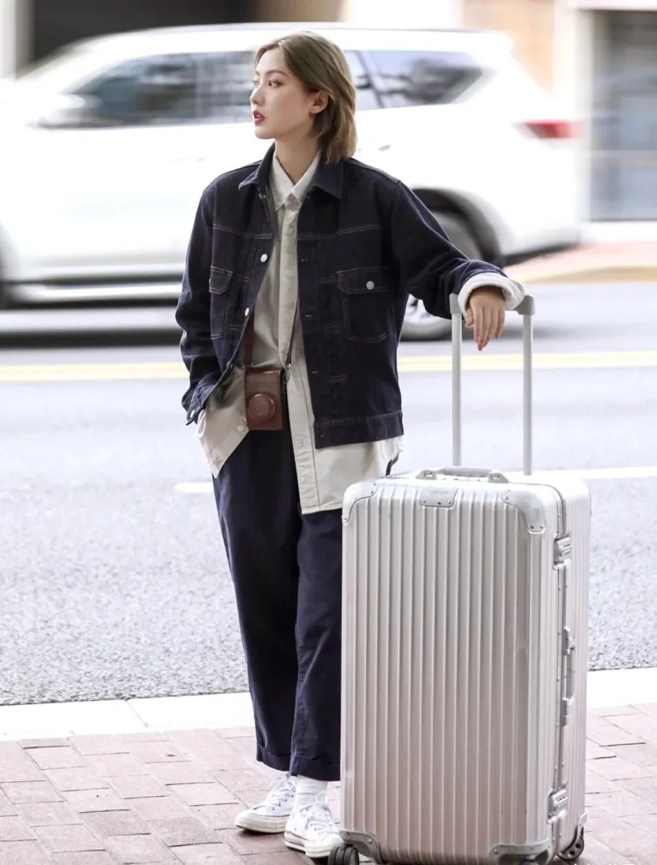 牛仔外套甚至不用费心搭配,直接穿一条同色牛仔裤就有飒爽帅气的感觉,简单且日常。