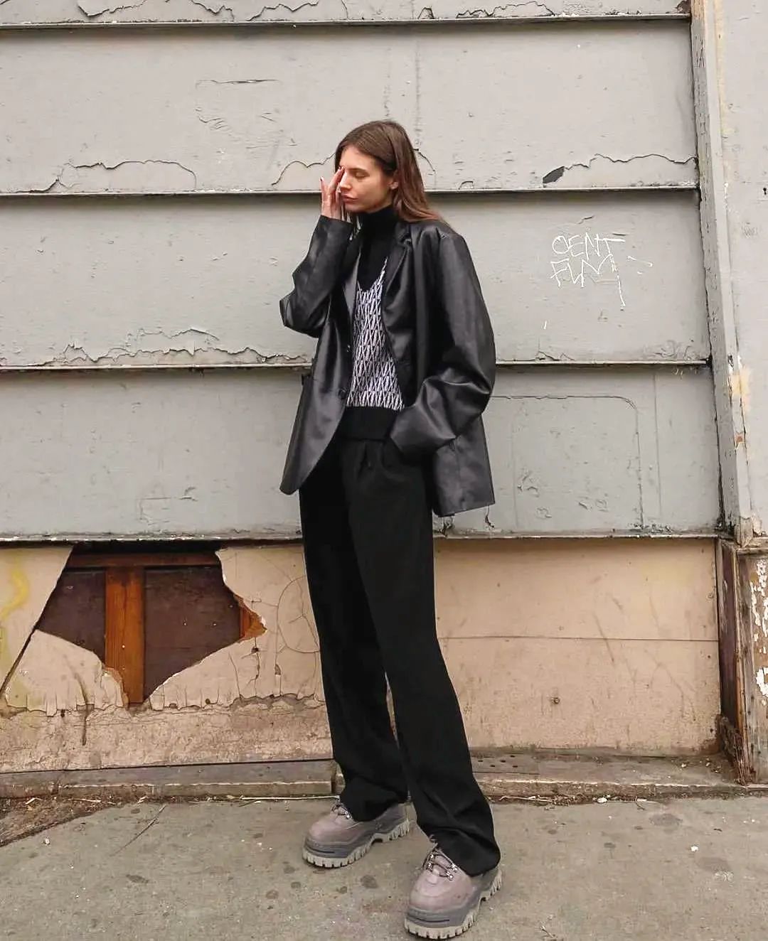 这个秋冬,酷女孩们可以支棱起来啦!穿上皮衣,一身灰黑色的搭配,走路都带风!