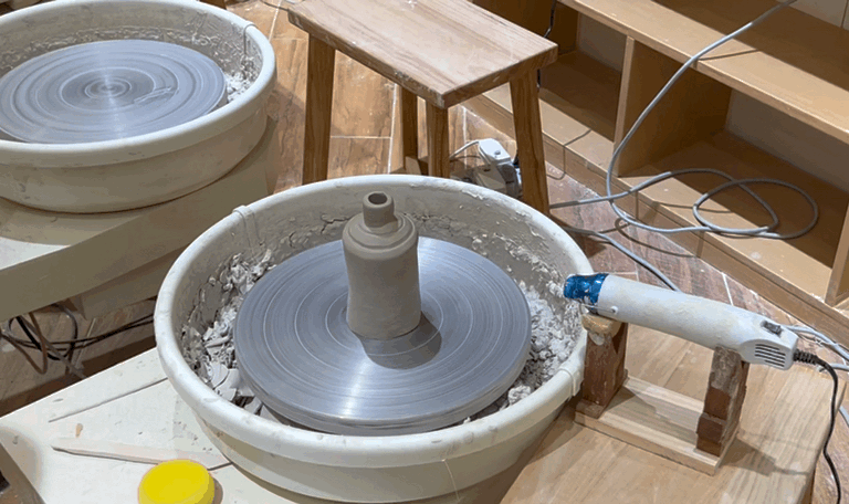 捏素胚的陶泥虽然能塑形但是湿度还是很高,不好上色