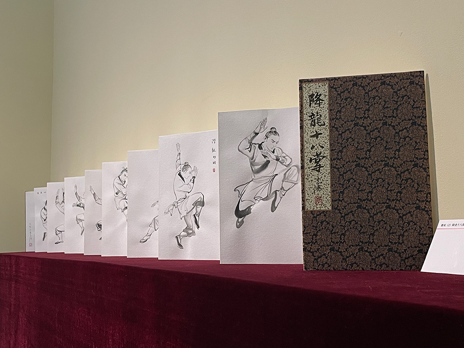“金庸展”还原降龙十八掌的招式。 澎湃新闻记者 吴怡 摄