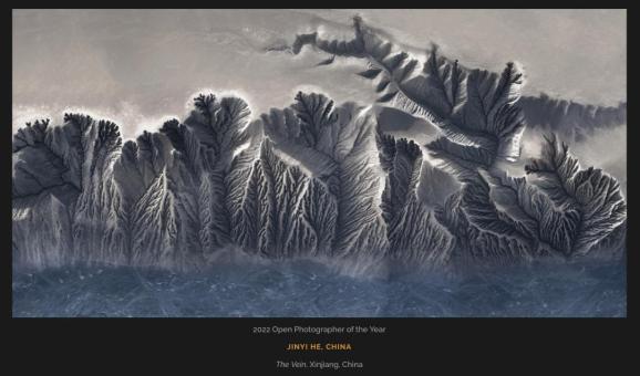 贺进一为这张照片起名为“静脉”,因为峡谷地貌的层层纹理,很像树叶的脉络或人体静脉。
