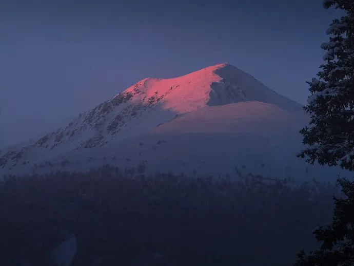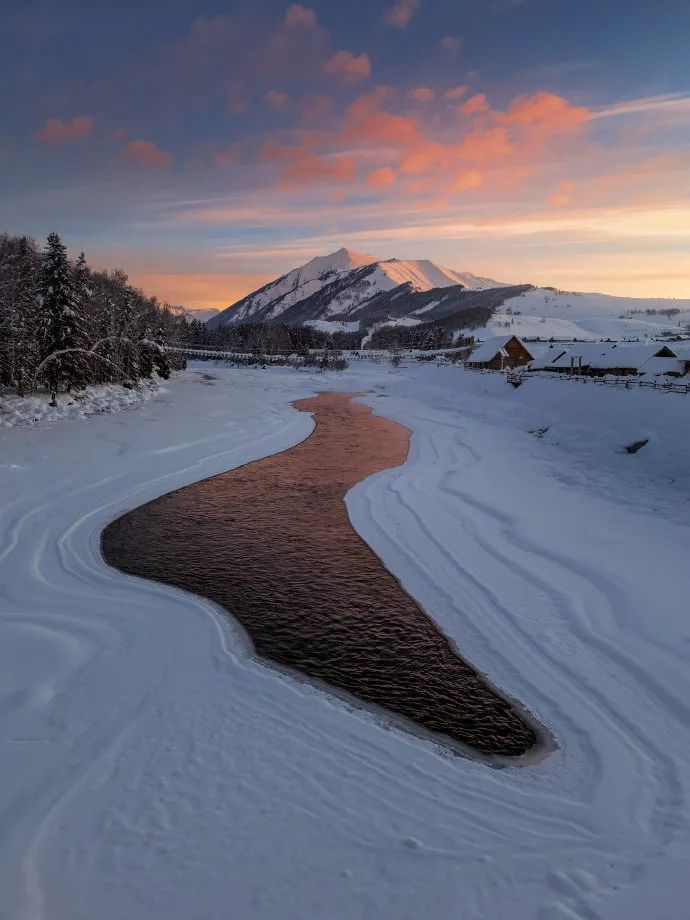上午十点的北疆,天刚微微亮,机位早在3个多小时前摆好,就为了捕捉一幕日出雪景。