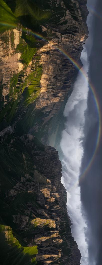 “当时我们在那待了四天三夜,天气都不太好。准备开拍的那天早上,还在下大暴雨。没想到雨停后,太阳光从云缝里透出,就出现了彩虹。”
