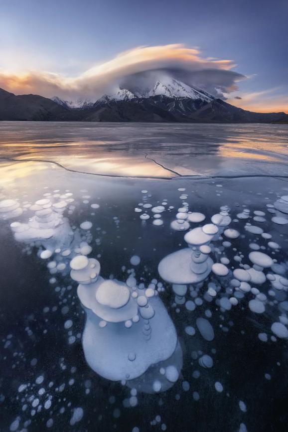 慕士塔格峰·冰湖有一次零下三十几度的天,他把自己包裹得巨厚实,和团队一起蹲守在喀纳斯湖边的角落里。