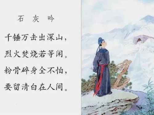 这是一首托物言志诗,作者以石灰作比喻,表达自己为国尽忠、不怕牺牲的意愿和坚守高洁情操的决心。于谦为官廉洁正直,曾平反冤狱、救灾赈荒,深受百姓爱戴。这首《石灰吟》可以说是于谦生平和人格的真实写照。原标题:《清廉机关建设 | 学廉洁古诗——《石灰吟》》