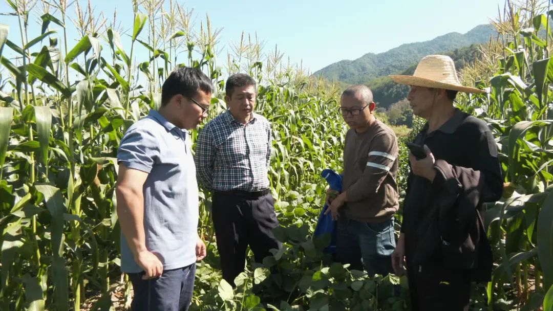 在里田乡李坊村泉清源家庭农场,玉米和大豆整齐带状排列着,一棵棵青翠的鲜甜玉米长势良好,玉米棒饱满结实。在两排玉米带之间,大豆长势也十分喜人,正处在鼓粒成熟期。县农业农村局的农技人员正在田间认真察看玉米、大豆的生长情况,详细了解种植户今年试验种植遇到的问题,并进行经验总结。里田乡泉清源家庭农场 肖纪钟