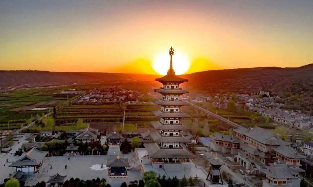 夕阳下,大云寺与回山相守相望隐秘在晚霞的余晖之中,仿佛时空再次相交,让两位在中国历史文化中举足轻重的“女神”相遇,在千年的相守中相知。此时,我的内心亦是无比激动。