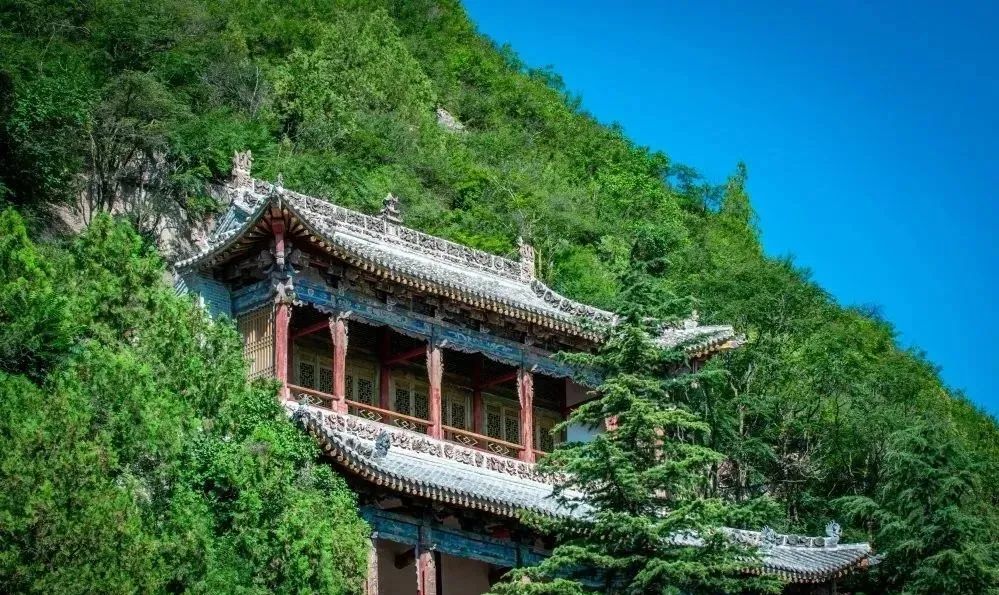 穿过神像,沿拾级而上有个隐秘着一个石窟。其依山而凿、略呈长方形,形若“凹”,窟内造像精美绝伦。后沿着指示牌一路前行来到了大约有70度倾角的天梯。抬头仰望,瞬间明白过来,不是这里没有云雾缭绕,而是还没有到真正的“仙界”。一时间带着莫名的是兴奋感,一鼓作气登临山顶。果然,这里别有洞天。庄严雄伟的大殿、三皇殿等依序排列,殿内墙壁上以画的形式讲述着不同关于西王母的故事,听得我如痴如醉。