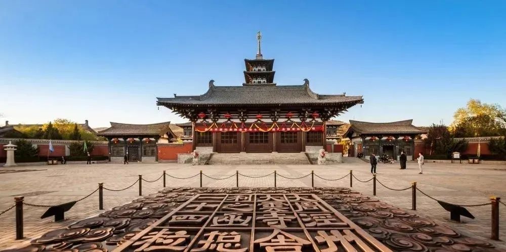 正当我沉浸在幻想与西王母隔空相约时,一瞬回眸,竟发现在山的北边坐落着一座雄伟大气的仿唐式建筑--名为“大云寺”。其建筑规模宏大,色调古朴,给人一种自带皇家贵气的感觉。据悉,公元690年67岁的武则天登基,称“神圣皇帝”。于同年敕令在两京(长安、洛阳)及各州都建一座大云寺,珍藏《大云经》。平凉泾川的这座大云寺是在隋代大兴国寺原址上兴建的。漫步在寺中的石阶上,穿行在唐式建筑的房屋间,仿佛依旧可以听到悠扬的诵经声,感受到女皇的豪迈英姿。
