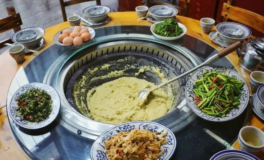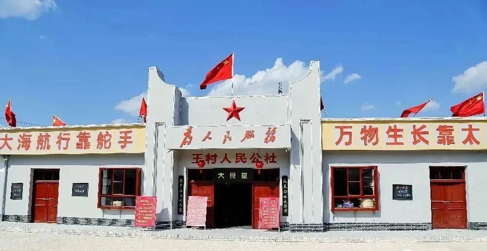 走入园区,立即会被充满时代气息的标语所吸引,大食堂门口有“共产主义是天堂,人民公社是桥梁”等等。我抵达时正好是午饭时间,便欣然选择在这里,品尝一次忆苦思甜饭。有农家小饭汤、王村手擀面、泾川懒面筋、苜蓿馍馍、洋芋搅团等地道乡土美食,“乡味”十足。