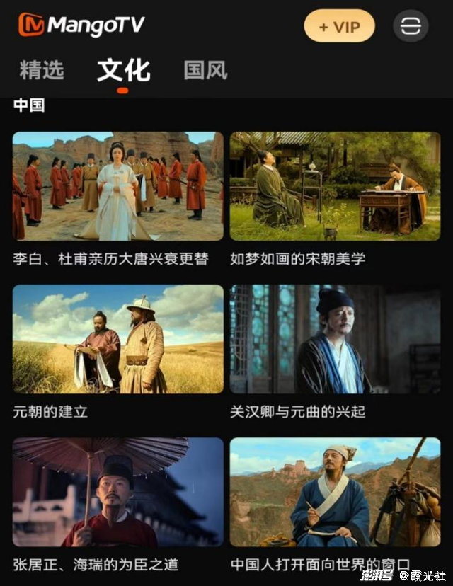 芒果TV则从一档纪实真人秀《功夫学徒》开始,带异国青年探访中国经验,与Discovery联合出品,为它打开了更广阔的传播渠道。如今,“文化”与“国风”两大主打传统文化传播内容的栏目,是芒果TV国际版首页重点展示的内容。