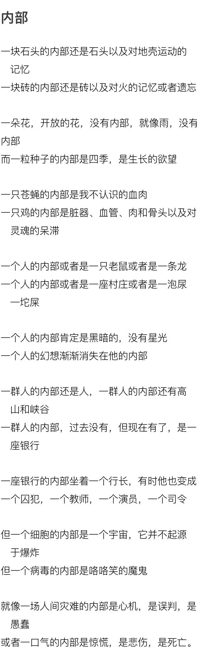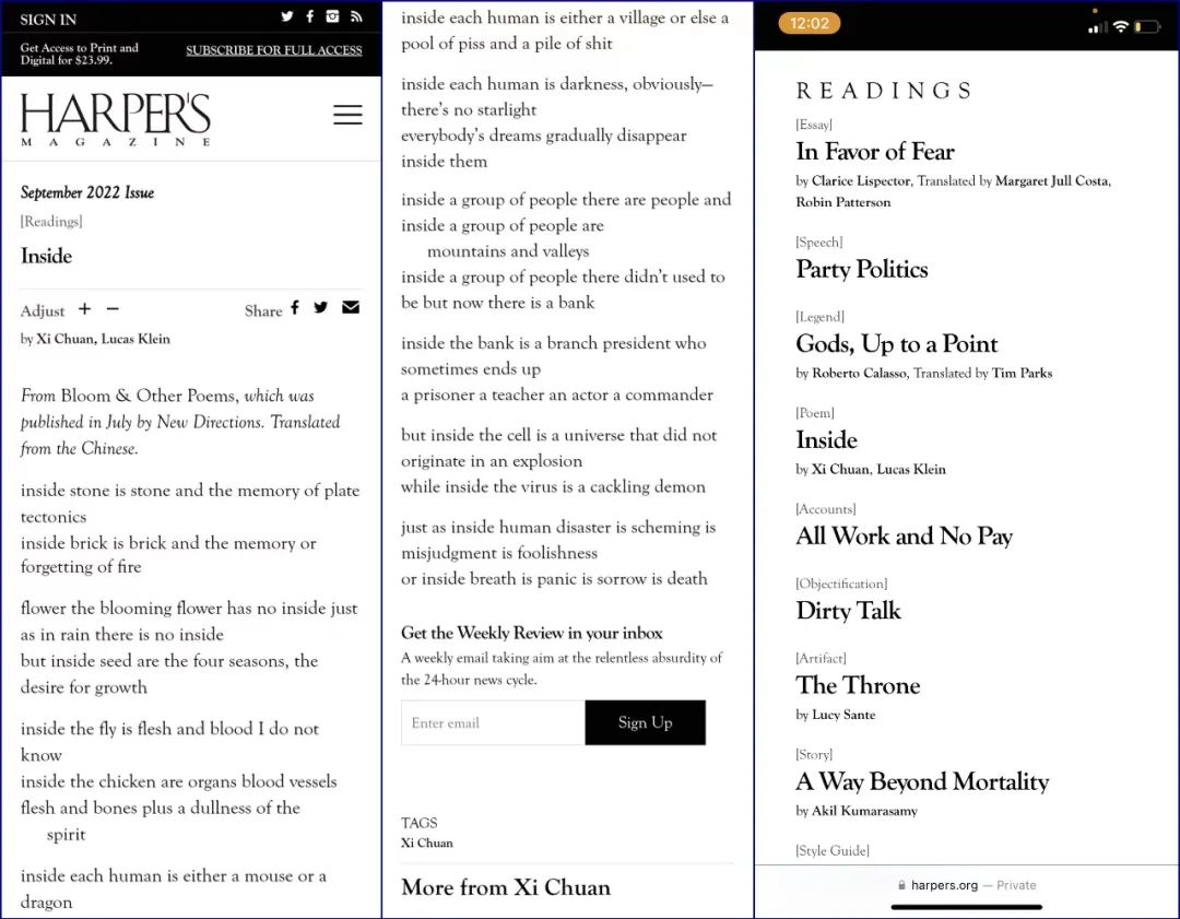 《哈泼斯杂志》9月刊发了西川的诗《内部》虎年觉悟