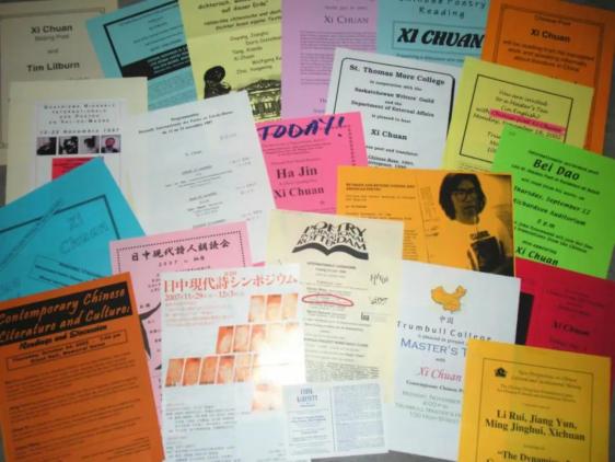 西川参与的部分国外诗歌朗诵会的宣传单占理的人