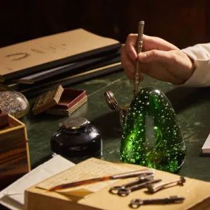 即使是一间算不上宽敞的小书房,也会毫不意外地被琳琅满目的书稿与文房用具填满。做工精细的墨瓶笔杆、造型别致的灯盏烛台、以及饶有趣味的小型雕塑及火漆印章等,都是桌案上必不可缺的时髦单品。