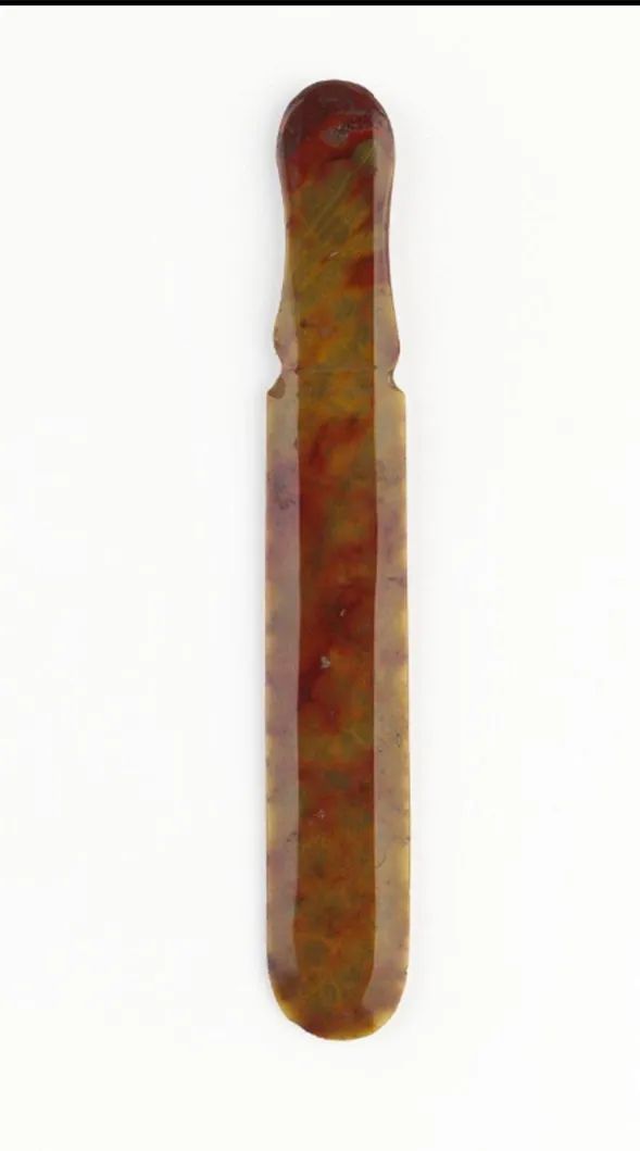 柯莱特的书桌上,可见一把用于拆信或分割书页的琥珀柄小刀,格外精巧。而有这么一件华丽堪比珠宝、锋利又似武器的别致小物,虽在如今的书桌上不再多见,在百余年前,却是因审美与实用并存而备受贵族雅士追捧的文房瑰宝,它便是曾被誉为“文人之刃”的拆信刀/翻书杖。