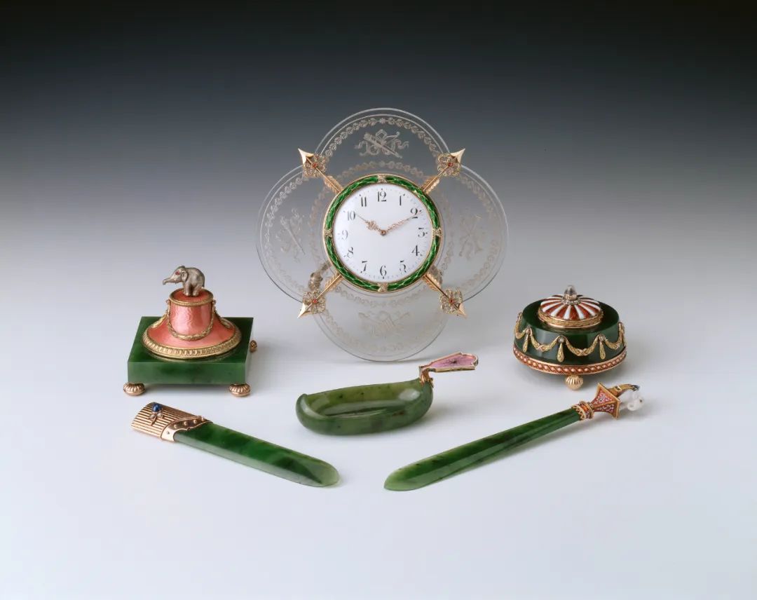 曾属于玛丽女王的黄金嵌碧玉材质文方用品 / 英国皇家信托藏 / 由俄国法贝热名匠Erik Kollin打造