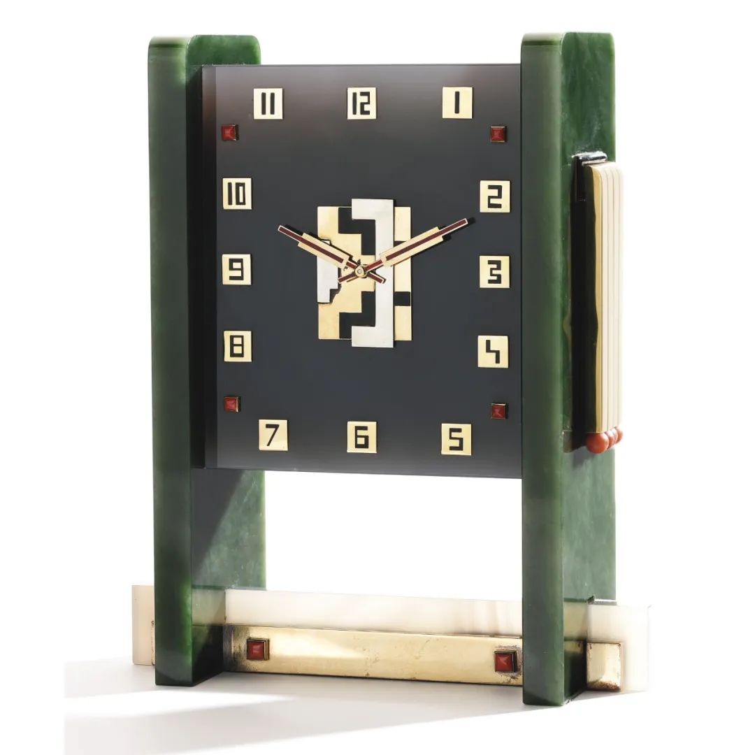 色泽的浓郁融合优雅格调,更令碧玉成为了各大顶级珠宝品牌的心头好,享誉全球的宝诗龙便是其中之一。在颇具摩登美感的装饰艺术时期,宝诗龙打造过诸多洋溢着幽绿翠色的时髦单品,一件以碧玉及珐琅制作的座钟就曾以约72万元的高价成交。