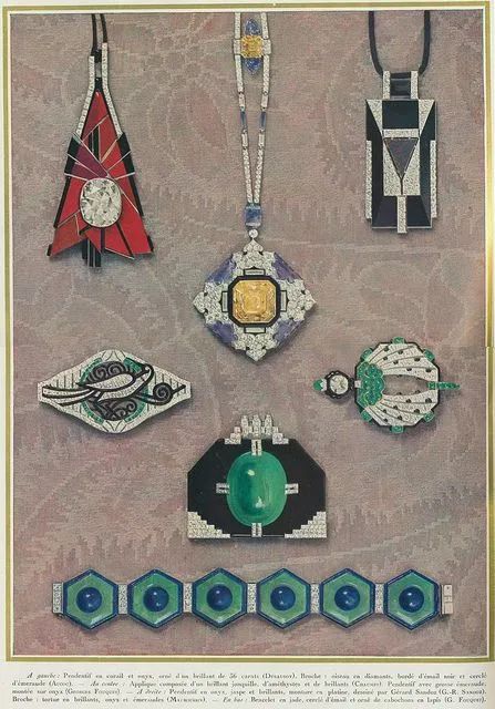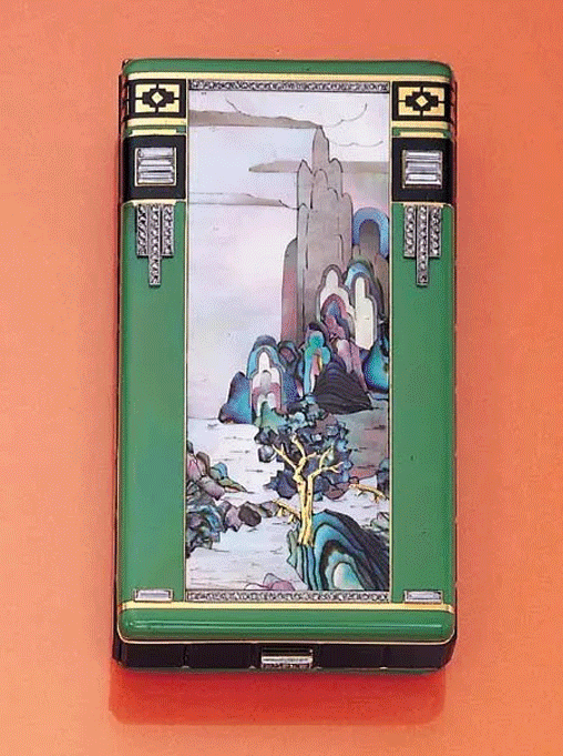 来自宝诗龙的装饰艺术风格碧玉鼻烟盒及胸针 / 简约线条搭配绚丽纯色,摩登大气。