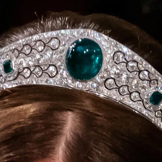 2018年,英国尤金妮公主大婚时佩戴的祖母绿钻石冠冕,正是宝诗龙1920年代的设计,撞色搭配与丰富几何感颇具Art Deco风情。