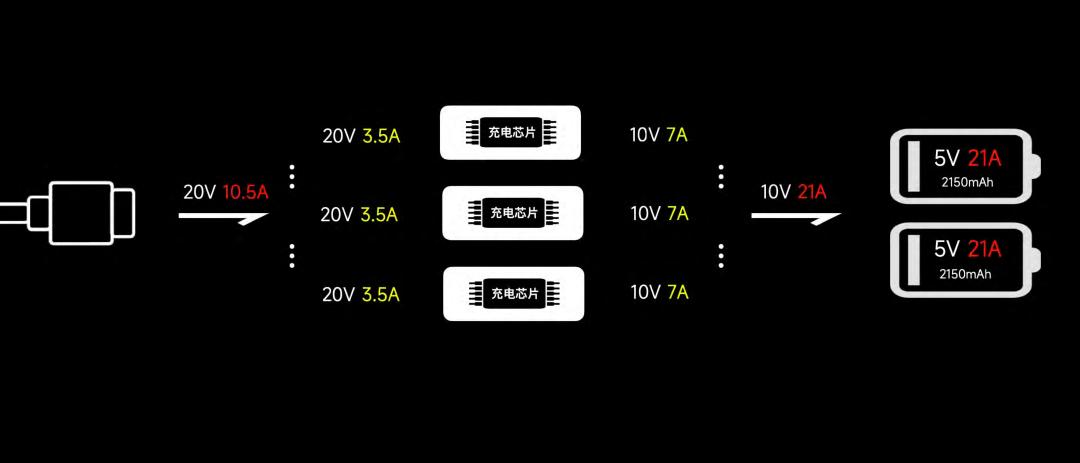 而除了特别设计的电池之外,小米的工程师还用了一些其他手段。比如为了散热,三颗充电芯片分布在两个位置上,避免热量集中。
