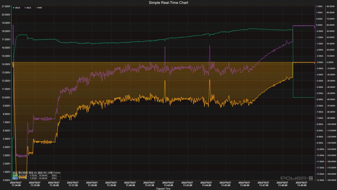 然后半途中,托尼一脚给记录数据的电脑踹死机了。。。所以,由于一些小失误,我们的确没有得到九分钟充满的数据。