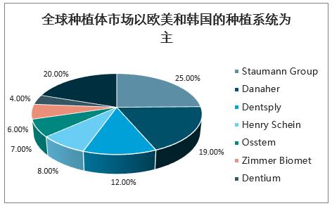 目前,国内口腔种植市场基本被进口品牌垄断,其中瑞典诺贝尔、瑞士士卓曼、美国百康等欧美品牌占据公立医院和大型连锁医疗机构等高端市场,韩国奥齿泰、韩国登腾等韩系品牌因性价比高,主要进入民营医院和口腔诊所;而国产种植体品牌的市场占有率不足10%。