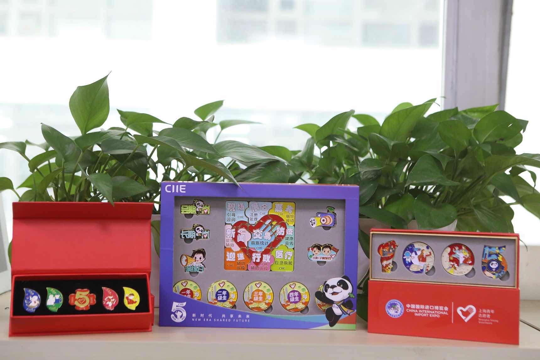 第五届进博会志愿者徽章(由23枚专属徽章和5枚激励徽章组合)。上海团市委 供图