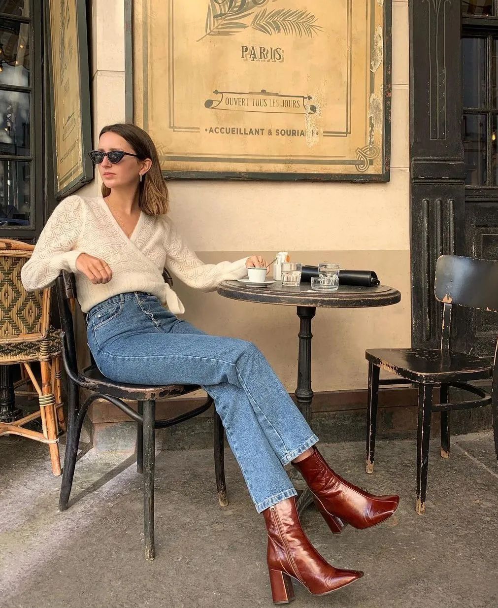 法国博主 Adenorah 就很爱穿这种带点小烂边的牛仔裤,一点都不单调,搭配各种风格都适用。