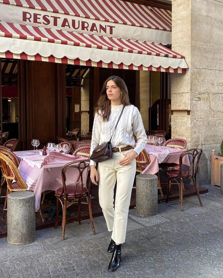 当然啦,想要气场强些,就换成更宽松、更有垂坠感的小白裤,配上高跟方头短靴,潇洒的大女人就是你啦。
