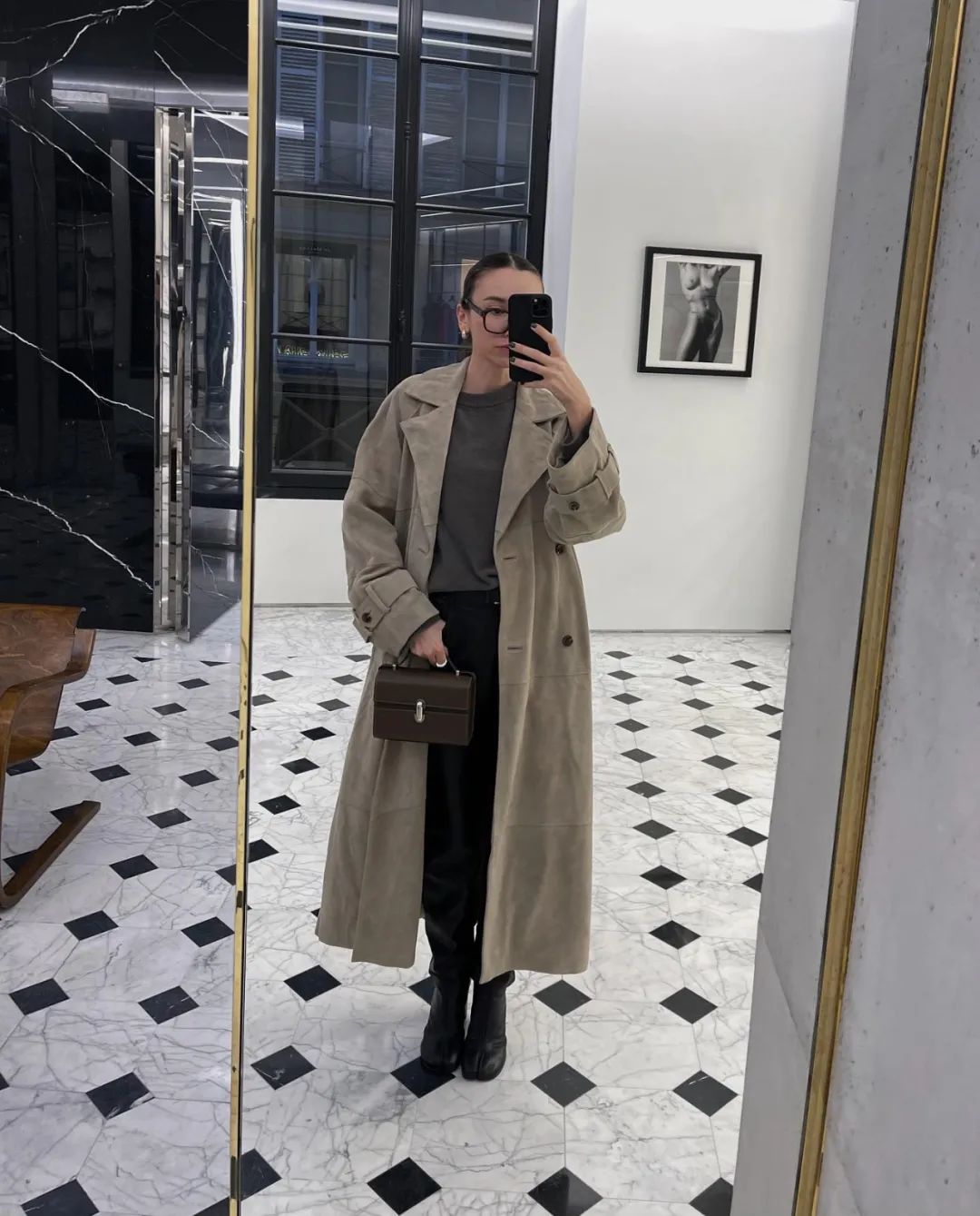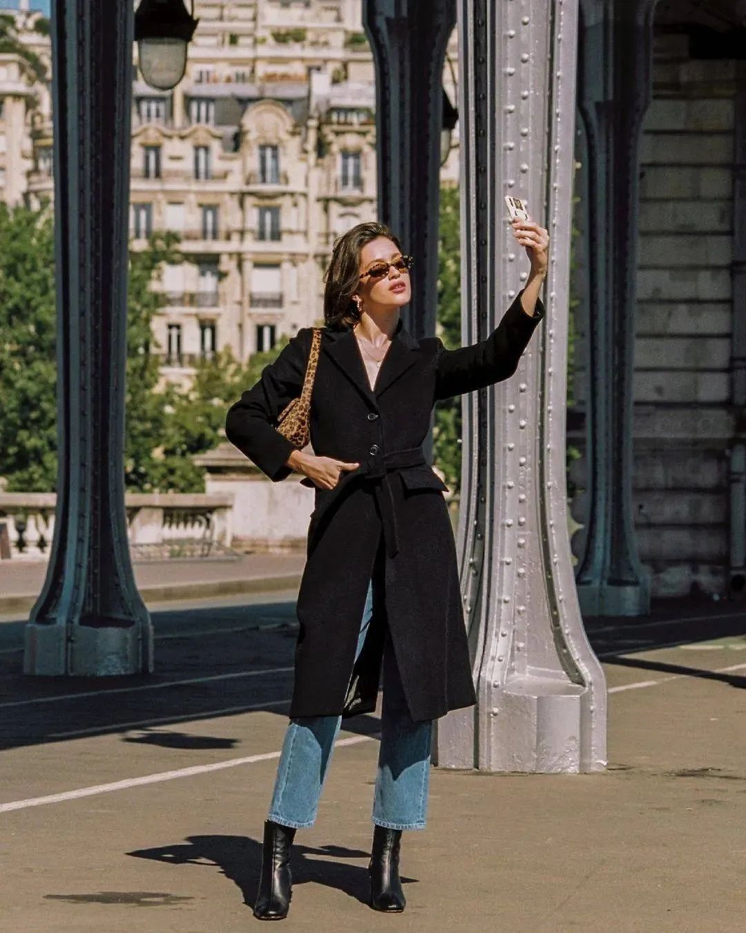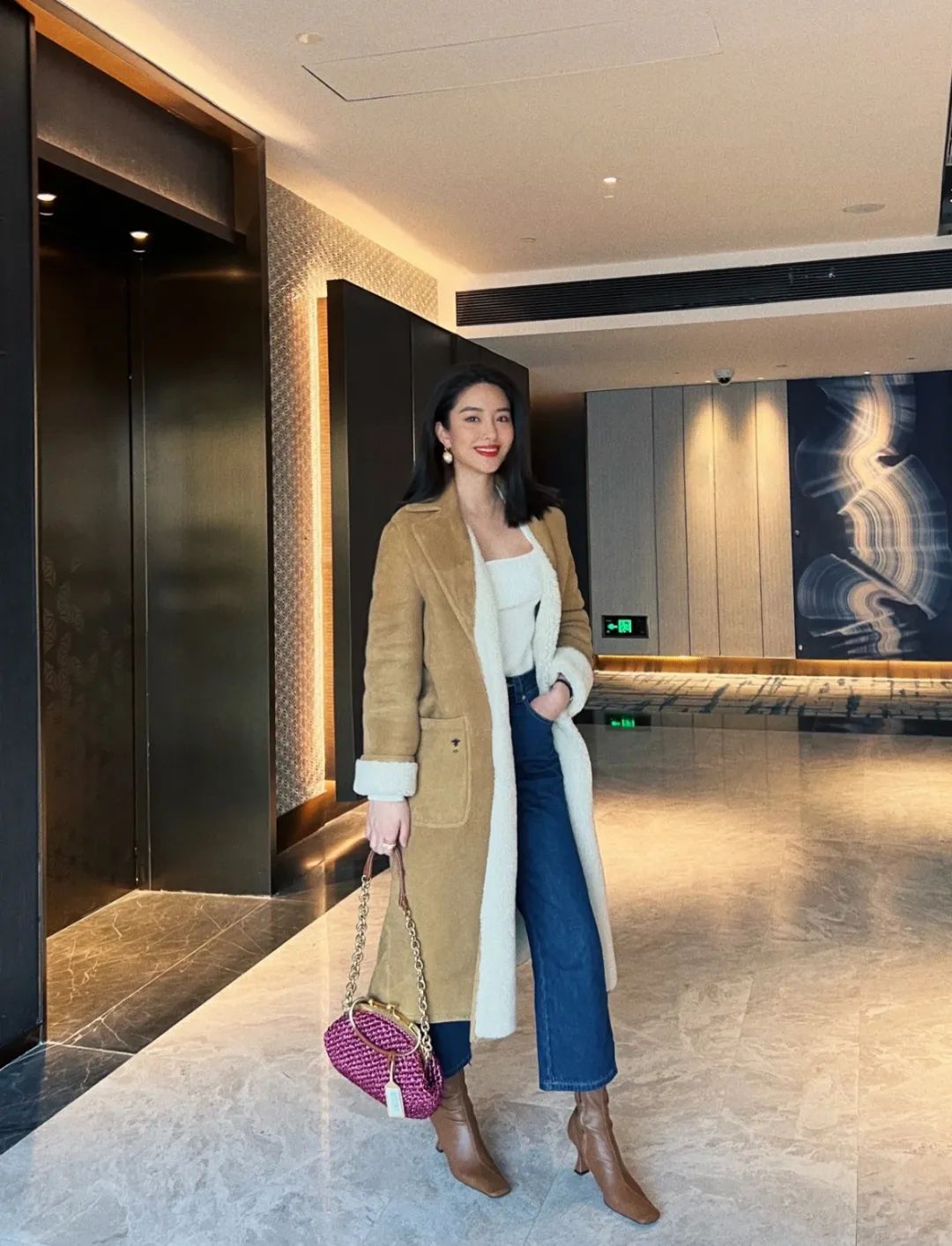 无论你身高多少,大衣长度至少要到膝盖,个高的集美可以直接选到小腿肚附近,配上吸睛的高跟短靴,光看背影就好精彩。