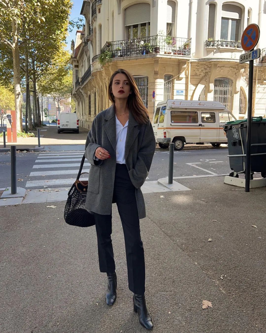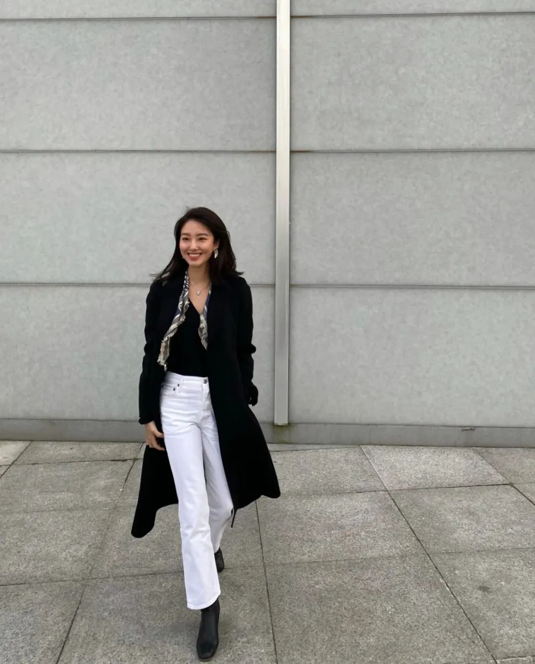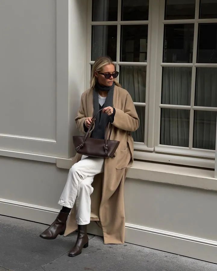 秋冬穿的长大衣+直筒小白裤,学法国女人那样pick较为宽松的版型,毫不费力就能打造出法式的慵懒与松弛感。